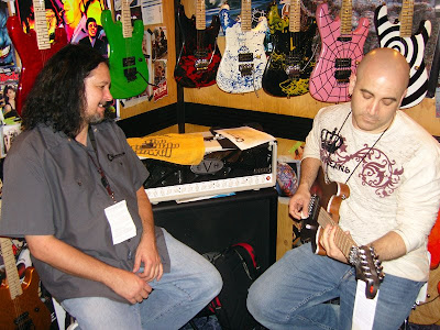 The Music Zoo’s owner, Tommy Colletti and Charvel’s Mike McGregor with the NAMM Show-Built San Dimas Custom: