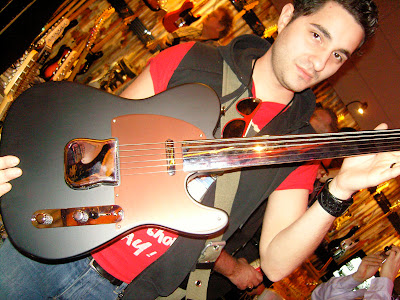 The Music Zoo’s Mark DiDonna is holding a really unique custom Tele; it has a fretless, mirror finish fingerboard: