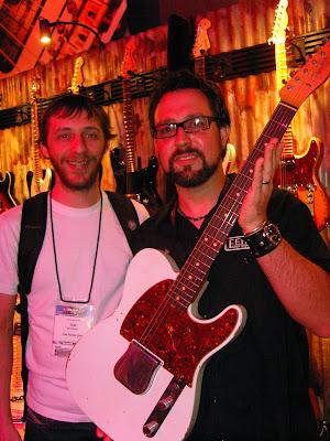 Jason was at the booth and told us that this ’64 has an “Illumatone” prototype Lace Sensor pickup behind the pickguard, making this Esquire pretty stealth. We are big fans of Jason; he has built many of our custom run Fenders in the last year or two. Here he is with the stealth ’64 Esquire, and The Zoo’s Tim Reynolds: