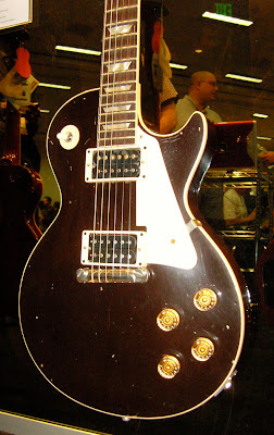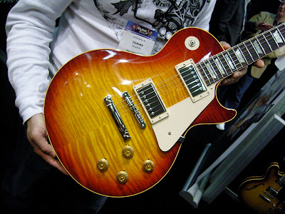 The first stop for us each year at NAMM is upstairs where Fender and Gibson set up shop. We started with Gibson, who this year had a much larger room than last year which made for much easier viewing of the new stuff. Let’s just get this out of the way: our favorite guitar in the room was this killer Michael Bloomfield Les Paul (above). Wow! A lot of attention in ’09 will be paid to the 50th Anniversary 1959 Les Paul Reissues, which feature the first comprehensive revision to the specs (over 20 changes) since 2003: