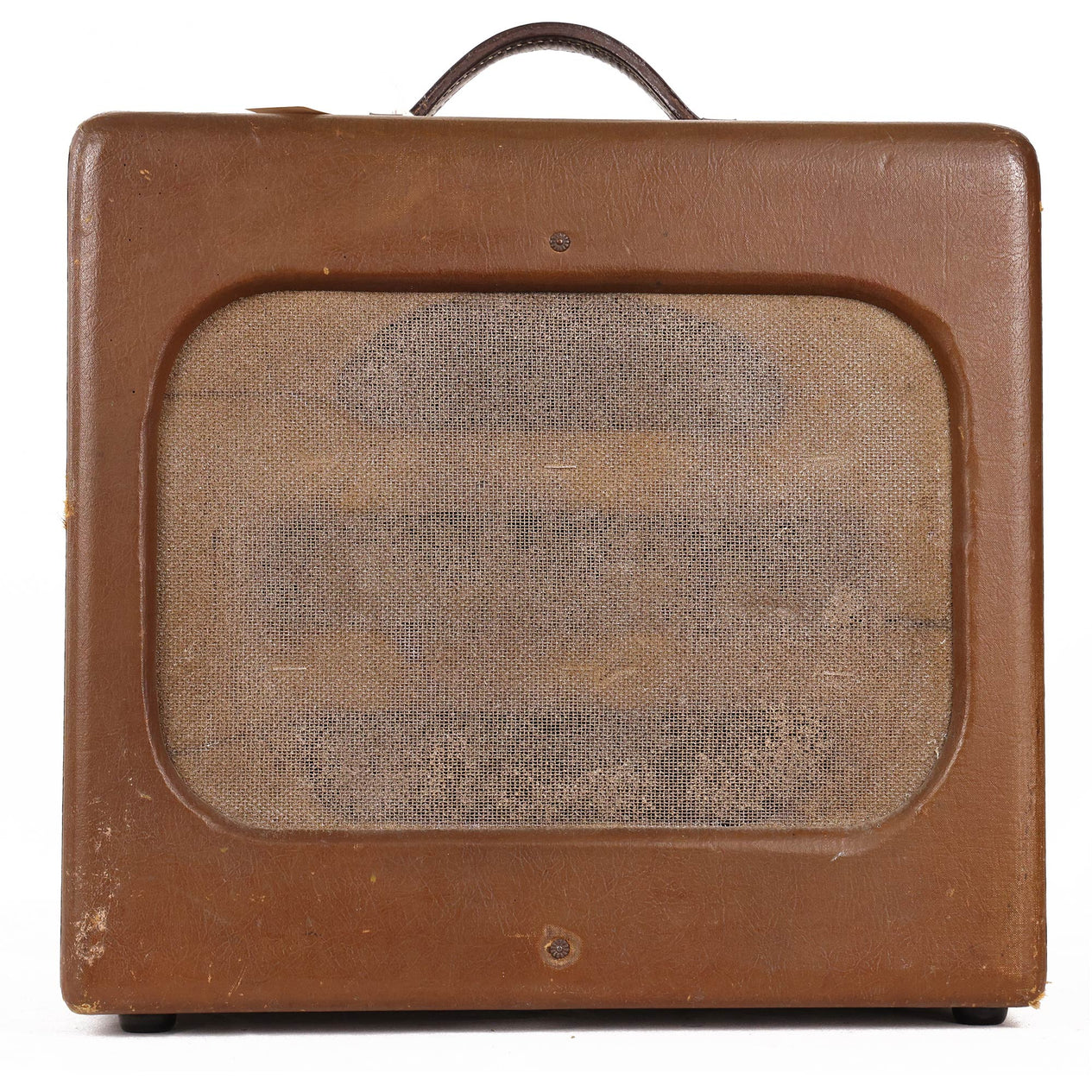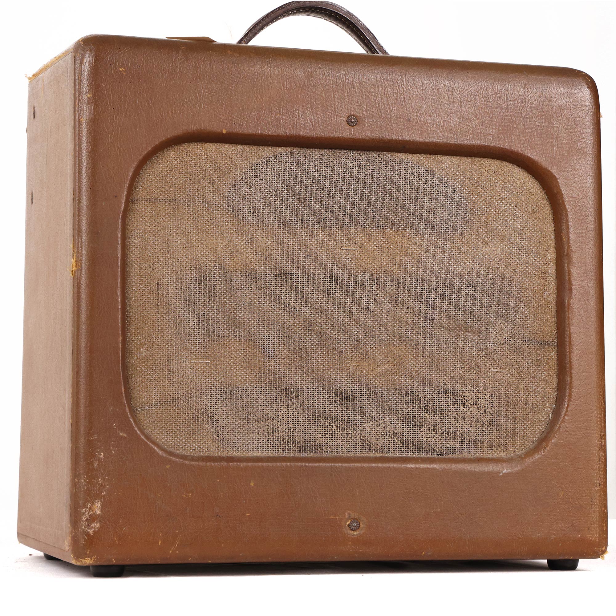 This 1950s 1x10 Rickenbacker M-11 is equipped with 6V6s, 6SJ7, 6N7 and 5Y3 vacuum tubes. It has one volume and one tone knob. Cranking the volume knob to about halfway introduces some haptic feedback. It is sold in as-is vintage condition as amplifiers of its age often need service and upkeep.