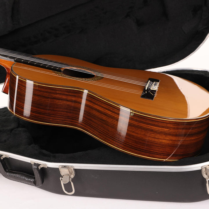 This is a 1970s Guild C900 classical guitar built of a cedar top with rosewood back and sides. The guitar has light playwear around the body and a few dings near the bridge, no cracks or anything structural. It has a 52mm nut width and currently the action is set at 3mm to 2.5mm low to high. The original case is included.