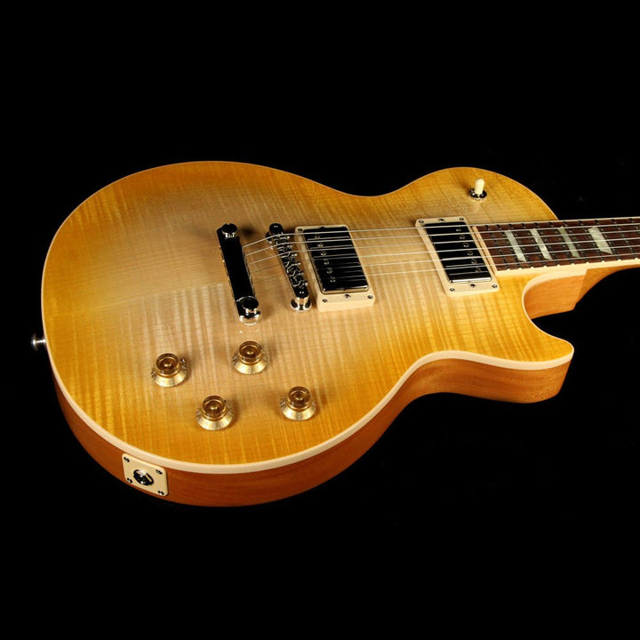 A return to the timeless Les Pauls of the ‘50s, this is the new 2017 Les Paul Traditional T – this model in an Antique Burst finish. The guitar has a solid mahogany body with a flamed AA-grade maple top, two Burstbucker 1 and 2 humbuckers for a ‘50s PAF tone, single-ply neck and top body binding, and vintage-style Keystone tuners. The guitar is also loaded with orange drop tone capacitors to keep the authenticity of the ‘50s intact down to the last drop – pun intended.
