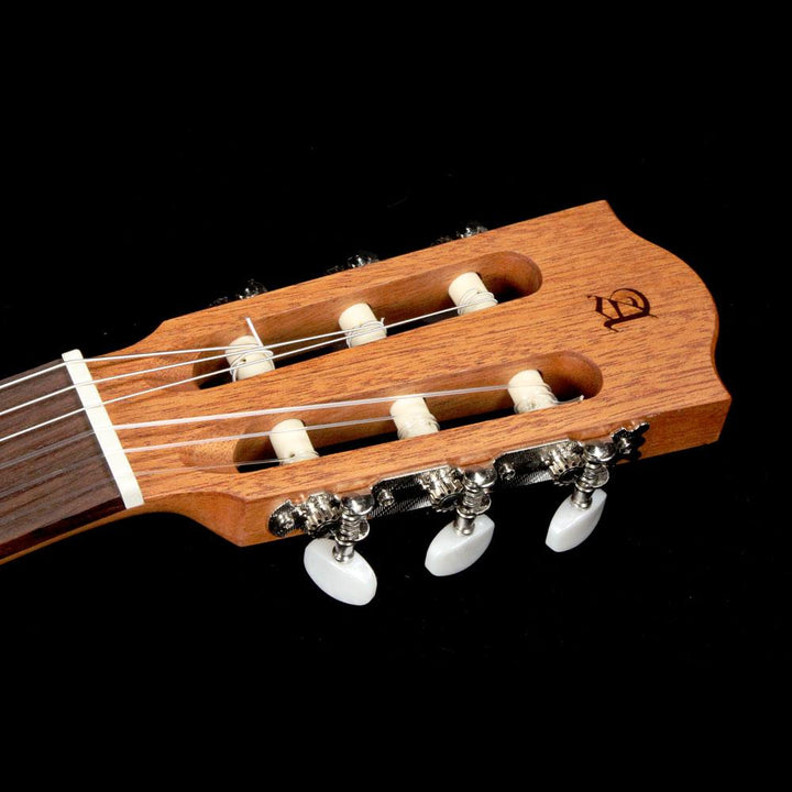 This is a lightly used OP1 classical nylon string acoustic-electric guitar from the Alhambra Open Pore collection. It’s built in Spain, and a great choice for a guitar built with solid top wood for beginning to intermediate classical guitar players. The OP1 has a solid red spruce top with mahogany back and sides, an ebony fretboard, and top-binding with nickel tuners. The guitar even has onboard electronics for checking your tuning and plugging right into an amp or PA system.