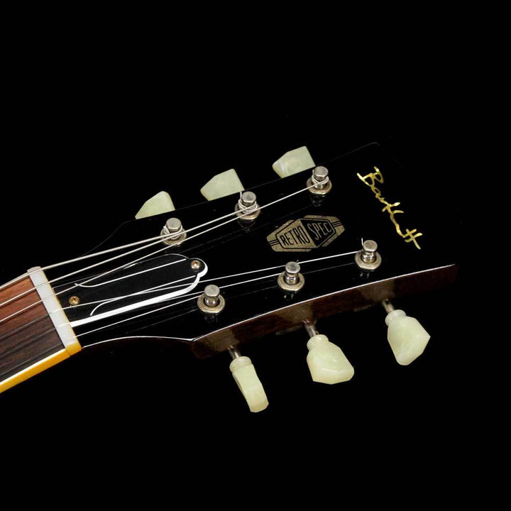 This is a Retrospec Semi-Hollow model from Bartlett Guitars, built outside of Toronto Canada to specs of the solidbody electric guitars of the 1950s that we all know and love. This guitar is crafted of old growth Honduran mahogany that's been chambered for a lighter weight with an added resonance thanks to the bound sound hole, with a fretboard of CITES-certified Brazilian rosewood, and all hot hide glue construction. The Retrospec is even finished in nitro lacquer that is made without any of the plasticizer found in modern nitrocellulose finishes. It's a gorgeous instrument that is built by hand with attention to every detail.
