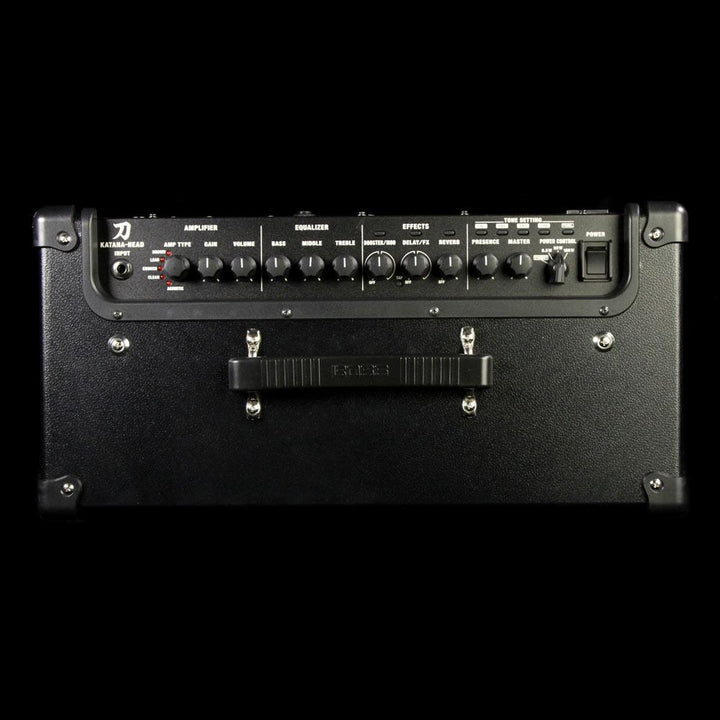 Tons of features packed in to a 100 watt solid state amplifier: this is the new Katana 100 from Boss! The Katana has five unique amp characters: Clean/Crunch/Lead/Brown/Acoustic, and has up to 55 customizable effects via the Boss Tone Studio editor software. You can store 15 different effects onboard the amp, and even have three going simultaneously. The amp has power scaling onboard for great tone at low volumes, and a built-in tilt stand for optimal monitoring.