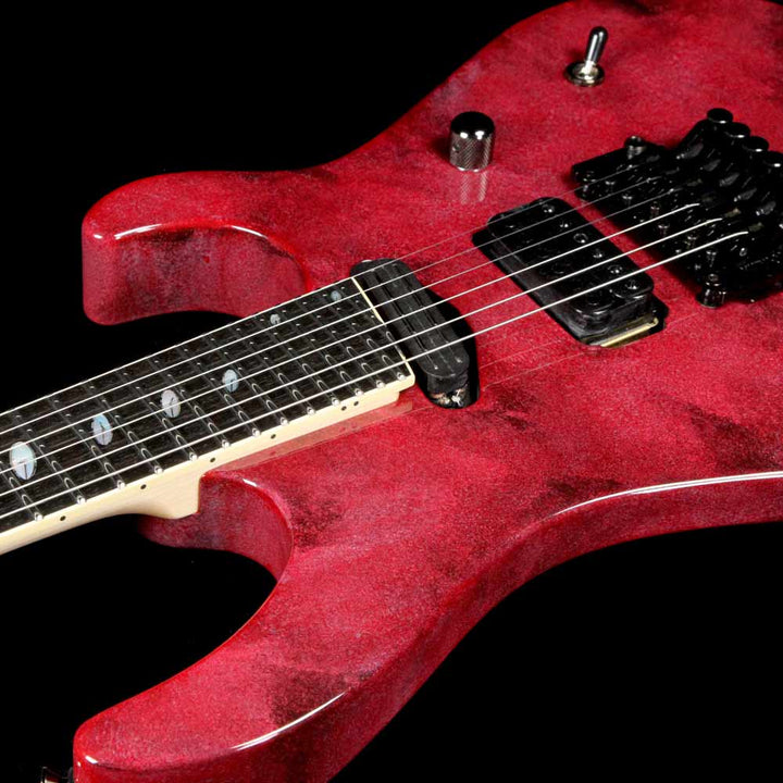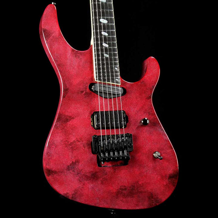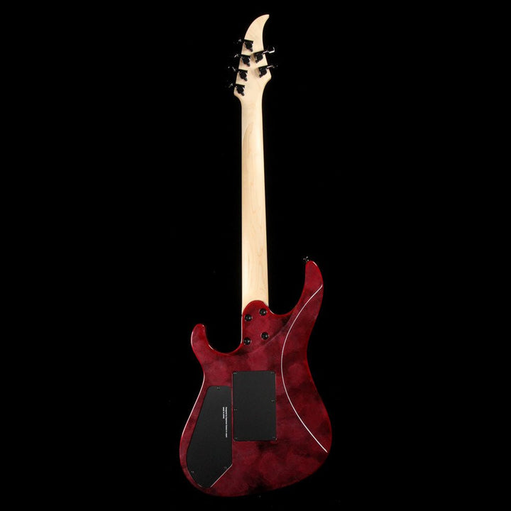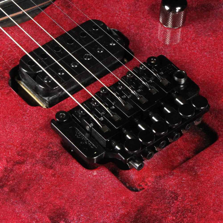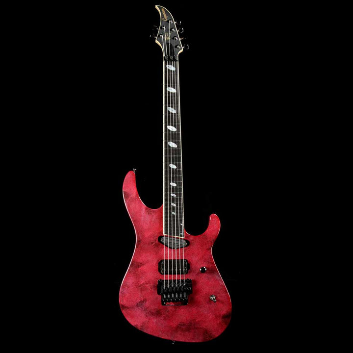 The Caparison Horus-M3 guitar has some very distinctive features. For example, it has a three-piece mahogany/maple/mahogany composite body that's layered vertically, and according to Caparison, yields balanced sound and rich sustain. We can vouch for that. It also has 27 frets on its ebony fretboard but with a 24.75" scale length. It also has a hand-applied sponge finish (Solar Flare). With the Schaller licensed Floyd Rose locking tremolo bridge/nut and two powerful Caparison pickups, this is a dream guitar for shredders used to standard-scale guitars.