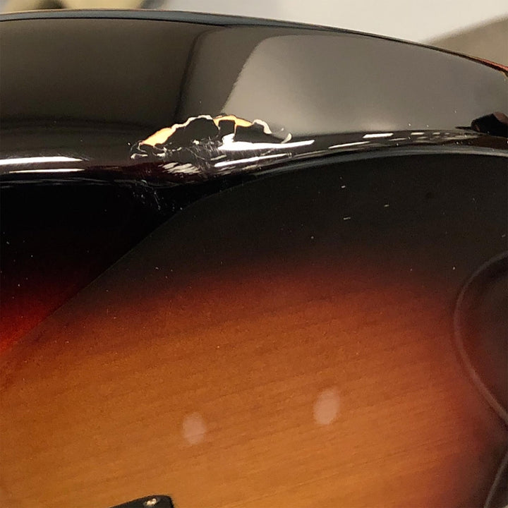 This is a lightly used and still in very good condition Charvel Pro-Mod DK24 in 3-tone sunburst - however, the guitar does not include a tremolo arm and has a crack in the body finish, as shown. Complete with awesome finishes, 2-point tremolos, and double Seymour Duncan humbuckers - these Dinky guitars are the full package. This guitar is finished in 3-Tone Sunburst, and built with a caramelized maple "speed" neck and Luminlay side dots to guide your way on dark stages. Brimming with versatility courtesy of the mini two-way toggle switch for series and parallel, this axe features an HH pickup configuration consisting of a direct mount Custom Seymour Duncan® Full Shred SH-10B bridge pickup and direct mount Seymour Duncan® Alnico II Pro APH-1N neck pickup. The bridge pickup radiates a crisp top-end with low-end articulation, while the neck pickup has incredible range with soaring highs and silky lows. The DK24 HH 2PT CM also offers premium modern features such as a five-way blade pickup switch, Stratocaster-style skirt knobs for the volume (with 500K EVH Bourns low-friction potentiometer) and no-load tone controls! As we said, this Dinky is the full package! Get yours today!