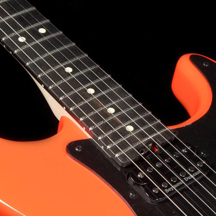 You gotta love this great value Charvel Pro Mod So-Cal, new for 2018! These instruments boast fresh new finishes and absolutely top notch quality and performance at a super accessible price point. The So Cal Style 1 HH FR is a time-honored return to Charvel’s Southern California roots, and boasts an alder body with a cool Rocket Red finish paired with an aged ebony topped maple speed neck with graphite reinforcement and rolled edges, a compound-radius (12"-16") fingerboard, and 22 jumbo frets. With the Seymour Duncan Distortion humbuckers, you get first rate tone! And the Floyd Rose tremolo lets you add plenty of expression to your playing.