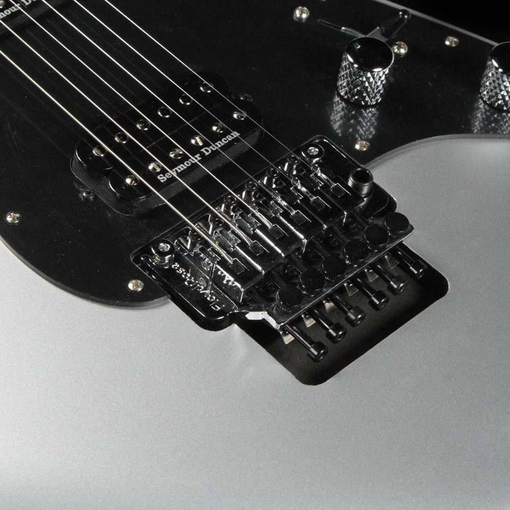 This is a great looking as well as playing, lightly used So-Cal from the Charvel Pro Mod series. The So Cal Style 1 HH FR is built of an alder body with a cool Satin Silver finish paired with a maple speed neck with graphite reinforcement and rolled edges, a compound-radius (12"-16") fingerboard, and 22 jumbo frets. With the Seymour Duncan Distortion humbuckers, you get first rate tone! And the Floyd Rose tremolo lets you add plenty of expression to your playing.