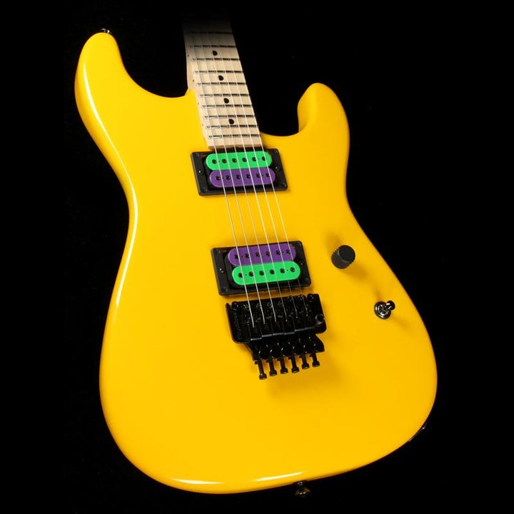 Here is a lightly used USA made Charvel Pro Mod Series San Dimas in its Style 1 incarnation and a Taxi Yellow finish. Made in 2008, this quality San Dimas features an alder body, maple neck and fingerboard, a top-mount Floyd, and a pair of DiMarzio color coil humbuckers - a Super Distortion in the bridge and an Air Norton in the neck. This Charvel is in excellent condition and includes the original hardshell case.