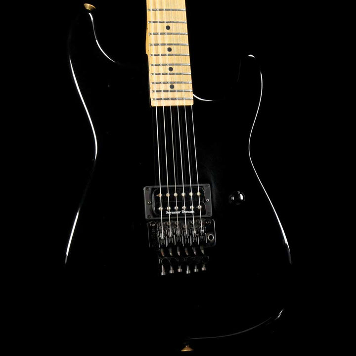 One humbucker and a Floyd...let's go! This is a used and in good playing condition Charvel USA-made San Dimas with a single Seymour Duncan humbucker, volume control, and a fast playing maple neck with jumbo frets. The guitar has players wear to it with some chipping around the headstock logo, dings around the body, and light scratches. It includes the original case. A great San Dimas for those who want a reliable axe!