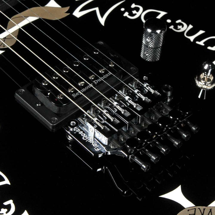 This Warren DeMartini USA Signature "Frenchie" guitar is hardly used and is in excellent condition! This Frenchie is a premium Dinky build, featuring a replica graphic finish based on the original shred machine Warren used in the '80s during the height of Ratt. If you live by the words - "too fast to live, too young to die", this guitar might be your spirit animal! The guitar features an alder body, a quartersawn maple neck, and is loaded with a custom designed Seymour Duncan RTM (Rattus Tonus Maximus) bridge humbucker and an SSL-4 Quarter Pound neck pickup. And no Warren or '80s guitar is complete with that Floyd! It includes the original case and trem arm.