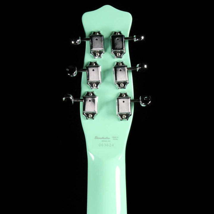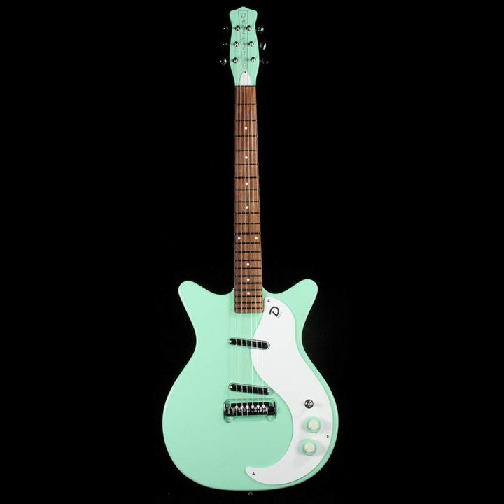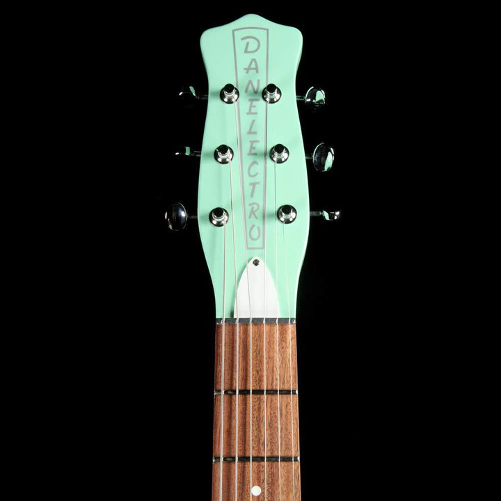 This is a used and in overall excellent condition Danelectro ‘59M-NOS Plus guitar, this one in a seafoam finish. The ‘59M-NOS is the famous shorthorn hollow body built with a Masonite top and back, “C” shaped maple neck, and two NOS Plus lipstick pickups for that famous Dano tone that’s been used from everyone from Syd Barrett and Jimi Hendrix to Beck and Nels Cline. The Plus pickups retain that traditional Dano chime with an added punchiness and a clearer high end. An excellent addition to your arsenal of instruments that won’t break the bank. Not much wear to be seen on this guitar besides feint pickmarks.