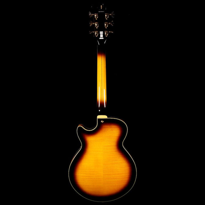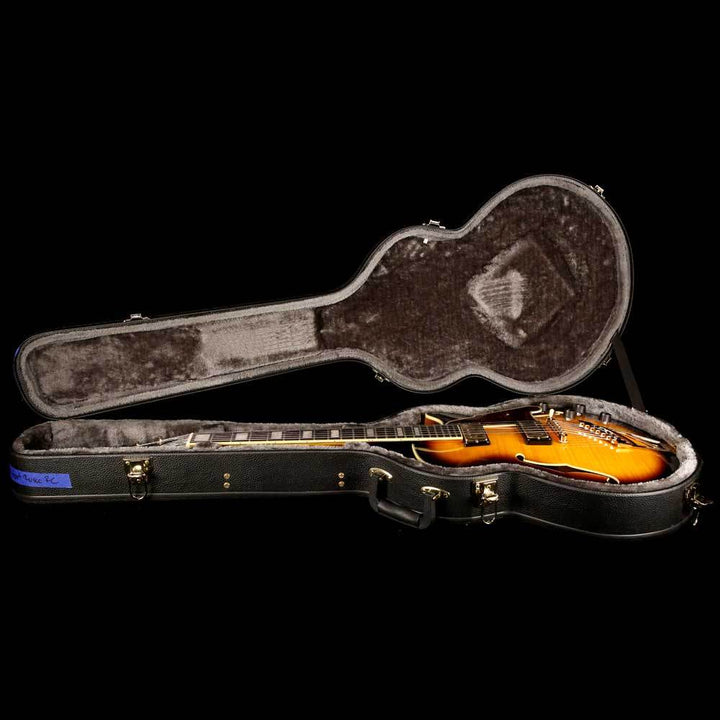 You can’t go wrong with the bang for your buck value of this D’Angelico EX-SS model, built in 2015 with a sunburst finish. The guitar has a laminate flame maple body with a maple neck, rosewood fretboard, and a pair of great sounding Kent Armstrong humbuckers. The guitar has some minor finish cracking around the neck heel, nothing structural, nor are there any major signs of playwear. It’s currently strung with flatwounds for a pure Jazz tone. The original case is included!