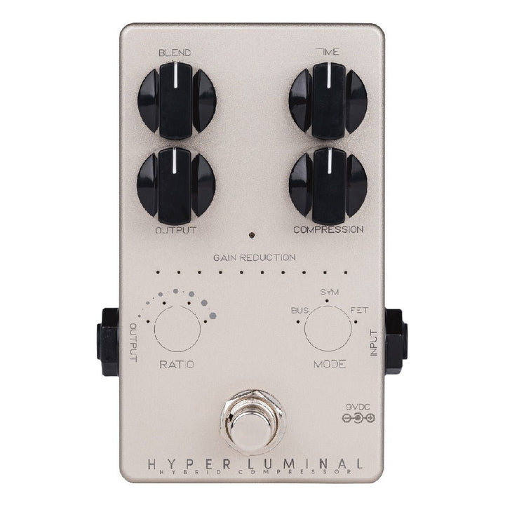 The Hyper Luminal Compressor features the first hybrid design in a compressor pedal: an analog VCA controlled by a digital side-chain allowed us to capture and include the characters of some of the most legendary compressors in history while keeping the signal path completely analog.
