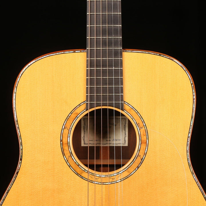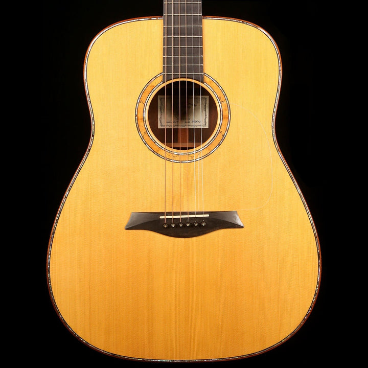 This is a beautiful DDN03 dreadnought acoustic guitar, built by Sergei De Jonge in 2004. The guitar has a bold sound thanks to the cedar top with rosewood back and sides. The guitar has nice cosmetic appointments that include a spalted maple and abalone rosette with matching abalone top inlay. The guitar is in overall excellent condition minus light playwear and a replaced nut, and includes a tweed hardshell case.