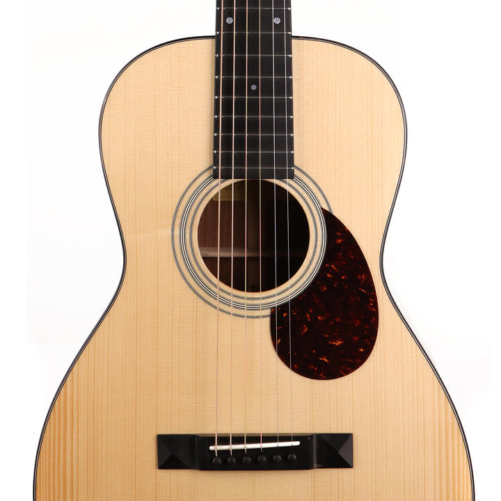 This is a used and still in overall excellent condition Eastman E10P acoustic guitar, a small bodied 12-fret slotted headstock guitar built with premium woods that include a solid Adirondack spruce top with solid mahogany back and sides. The guitar has a 24.9" scale length for a nice and slinky feel, this is definitely a rhythm players dream!