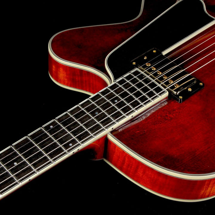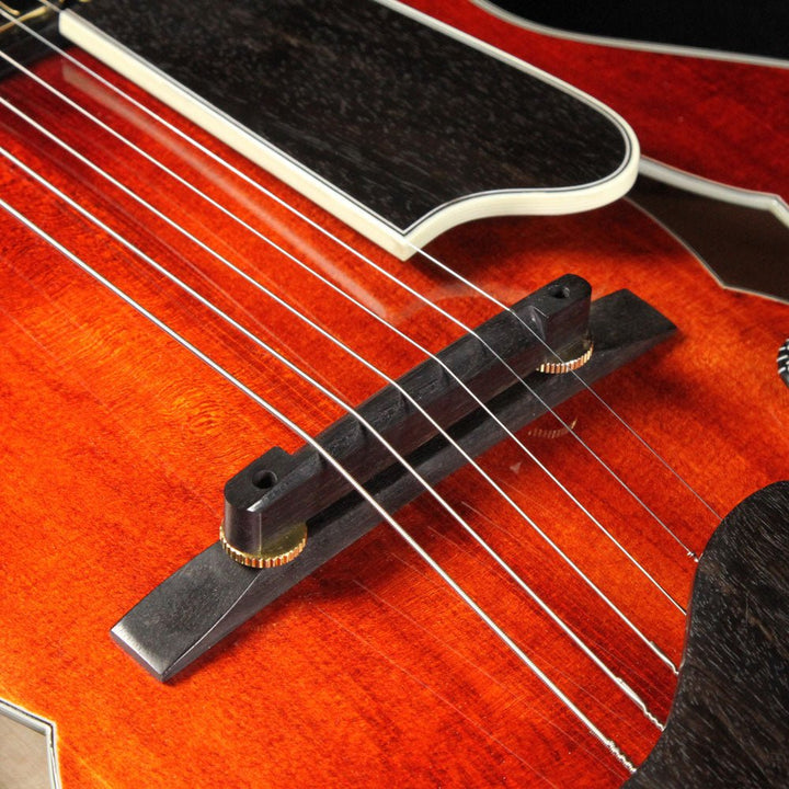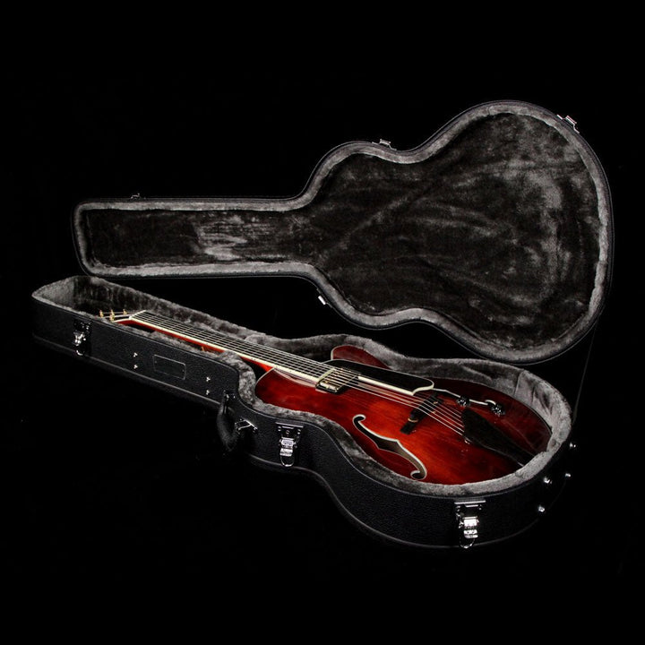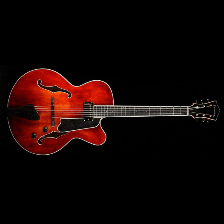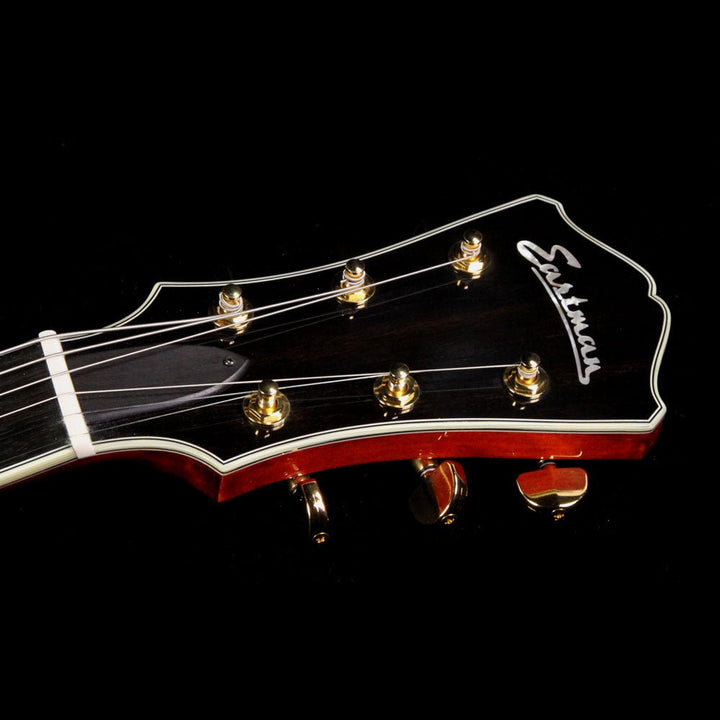 An affordable, fantastic looking Eastman archtop guitar at a very affordable price. This is a used Thinline T146SM guitar in a sunburst finish built with a solid spruce top, maple back and sides, and a Kent Armstrong humbucker in the neck position for those warm Jazz tones. The guitar is in excellent overall condition with no signs of use.