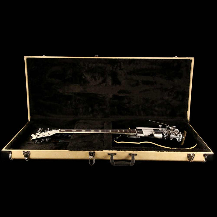 One of the great things we'd like to imagine about being a Rock Star is that you get to collect all the instrument you want! In the same vein, sometimes it's time to thin the herd, and we're more than happy to bring you the Eddie Ojeda collection of pre-owned instruments, being sold by the famed Twisted Sister guitarist through The Music Zoo. This is Eddie's Airline MAP Deluxe model in Black, a very fun reissue guitar with a lightweight mahogany body, two Alnico Hot-10 humbuckers, and includes a hardshell case with some case candy.