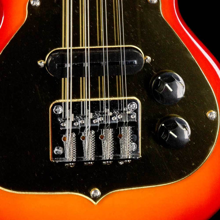 An ode to the 1950’s Ric 5002V58 electric mandolin, this is a used and in overall very good shape Eastwood Ricky Tribute in Cherry Burst built with a solid alder body and set construction maple neck, 14” scale length, and a single Warren Ellis single-coil pickup. A ton of electrified mandolin fun at an affordable price!