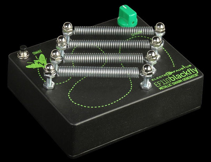 A bit of a unique sonic noise maker, this is the Electro Faustus Blackfly. The Blackfly consists of 4 springs arranged from a low to high pitch. Stricking, strumming, scraping or plucking these springs will create a wide spectrum of sonic textures. Where you play the on the spring and how much pressure applied will yield various effects...throw the Blackfly through your pedalboard and see what kind of fun you can create.