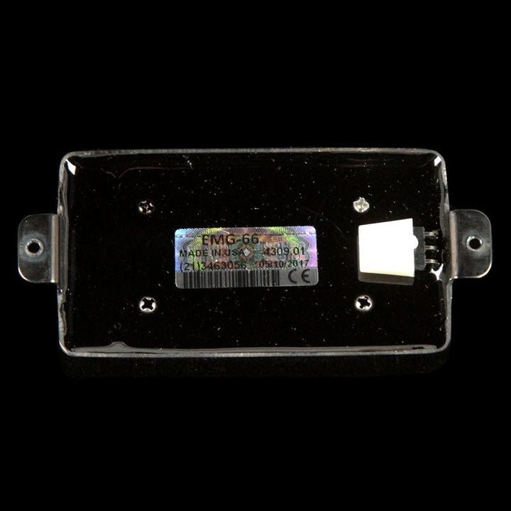 The EMG 66 is a humbucker for a wide variety of musical styles, with a unique sound thanks EMG's unique use of Alnico V magnets and ceramic pole pieces. The 66 is voiced for the neck position, with lots of pronounced (but not muddy) low end with a smoothed out midrange and a sweet clarity to the treble thanks to the ceramic pole pieces. This humbucker has a black chrome cover.