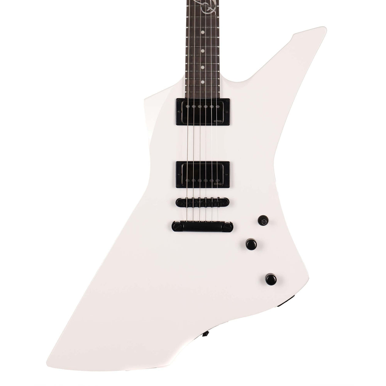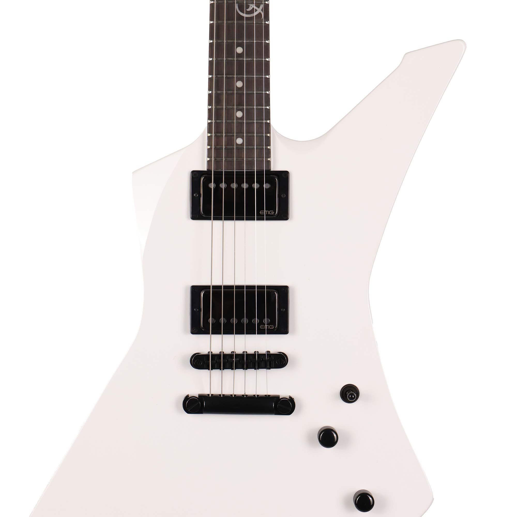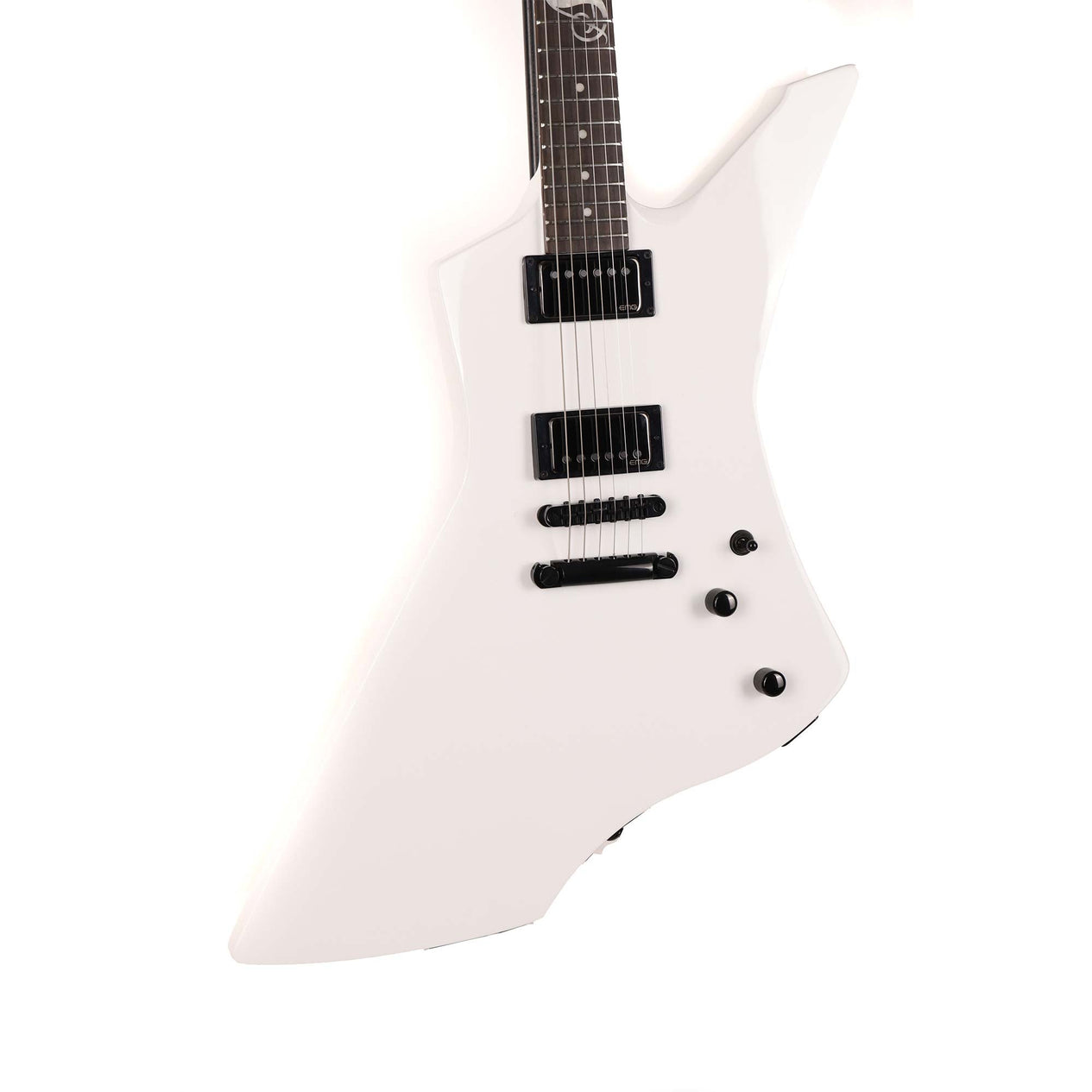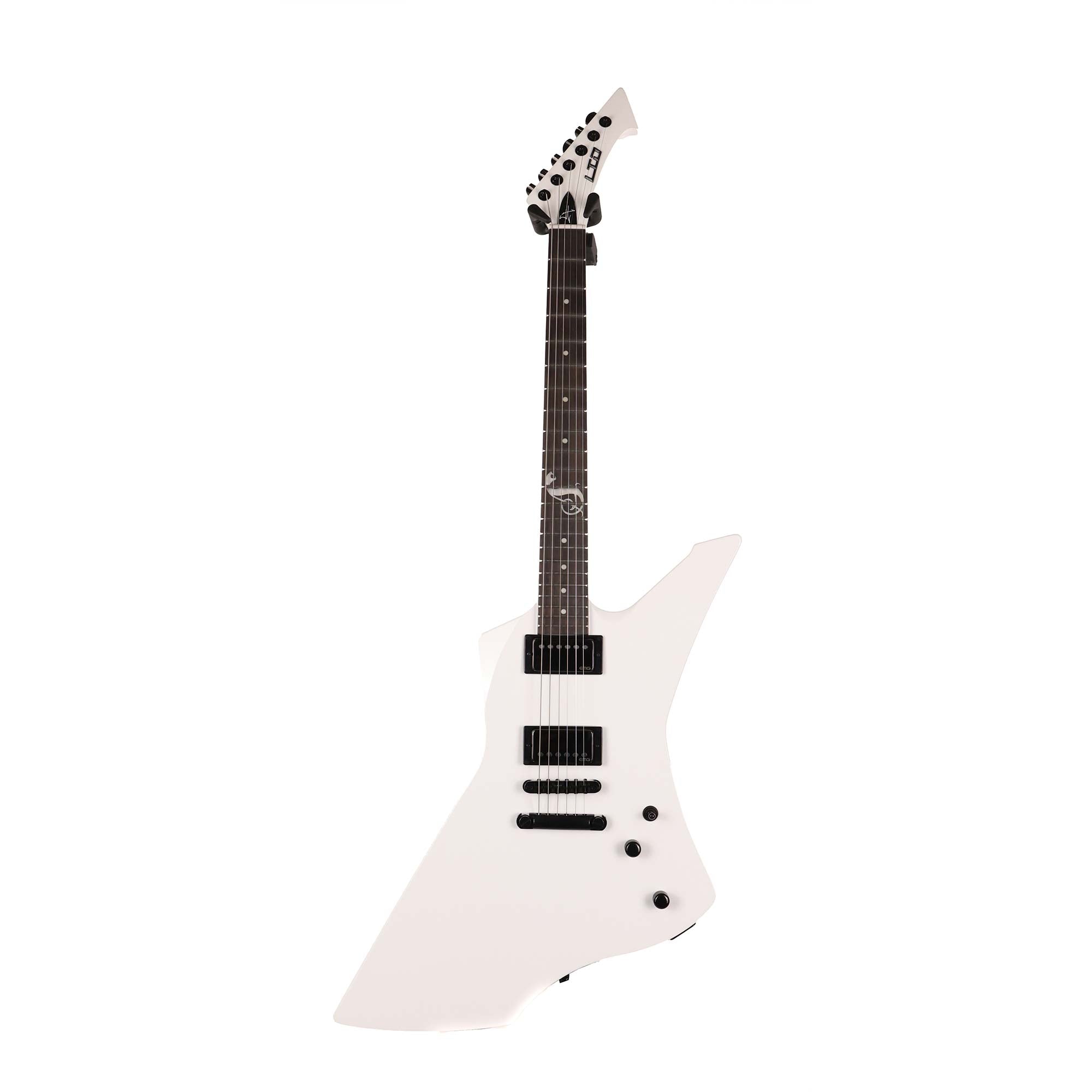 This JH Snakebyte in a Snow White finish from LTD is a more affordable version of the ESP JH Snakebyte that is one of the signature guitars of Metallica's James Hetfield. Different price but still the same amazing playability and build quality of ESP. The Snakebyte is the very guitar that James has been playing for years! It's outfitted with a signature set of JH EMG pickups and built with a mahogany body and neck and an ebony fretboard. Scale length is a familiar 24.75 inches. Like all LTDs, the JH Snakebyte is an absolute workhorse that plays and sounds great under the duress of heavy use.