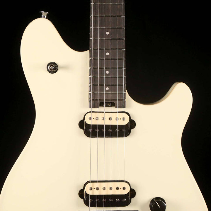 This is a used but still in overall very good condition EVH Wolfgang Special. The guitar is a flat-top version of the carved-top USA-made Wolfgang, and this one features an Ivory finish. Features include a basswood body with maple top, low-friction pots, EVH-branded Floyd Rose tremolo with the D-Tuna® system, EVH humbuckers and a quartersawn maple neck with an ebony fingerboard. The EVH Special is a tone monster and a real workhorse at a very affordable price. The switch on the guitar has been replaced.