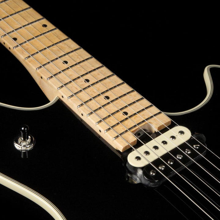 Here's a workhorse guitar if there ever was one: the EVH Wolfgang USA in black. The Wolfgang is the culmination of all of Eddie’s experiments in making the tank of a guitar he needs to get through the Van Halen set every night; a quartersawn birdseye maple neck with graphite reinforcement rods, 22 stainless steel vintage sized frets, double-potted custom wound Wolfgang humbuckers, and a Floyd Rose tremolo with an EVH D-Tuna to quickly drop your 6th string down a whole step.