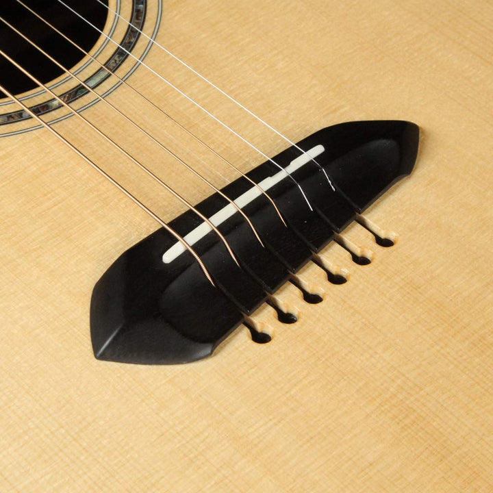 The secret to the unique open resonance of this guitar lies in all Falbo models. Frank Falbo was known as a natural inventor while working for Seymour Duncan, and his Intention Bridge is the motivation for this new guitar line. With this bridge design, the strings attach to the guitar behind bridge and are anchored to counteract the torque created by string tension. Because of this, Falbo guitars require much less internal bracing.