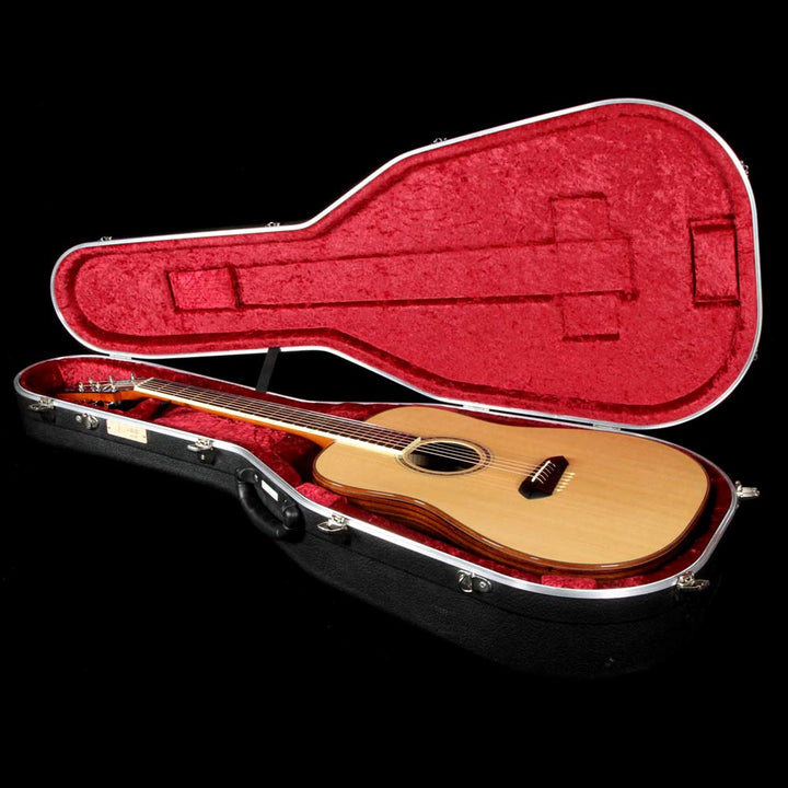 This lightly used Falbo Alpha Series Dreadnought is imagined by Frank Falbo, former vice president of Seymour Duncan. This is a Dreadnought built with an Italian Spruce top and rosewood back and sides, and it boasts a very expansive, powerful, yet articulate sound. A compound radius ebony fretboard makes for effortless playability and an ultra-thin UV/Poly blend finish allows the guitar to really breath.