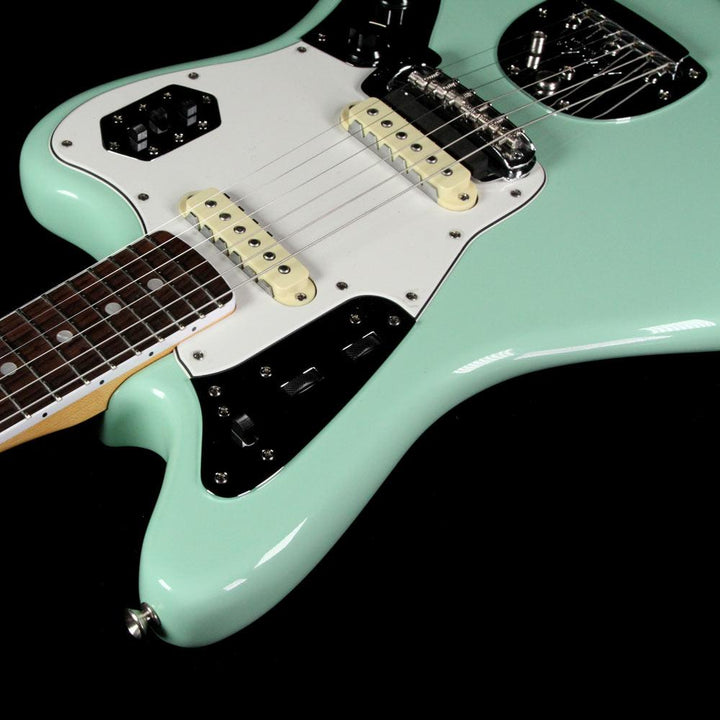This is a used but still in excellent condition Fender American Original '60s Jaguar in a great Surf Green finish! The American Original takes the appearance of a Jaguar in its classic form and gives it a modern tweak with vintage-tall frets and a 9.5" radius. From Surf Rock to Indie and Punk, the Jaguar has made its name known as the go-to for those who want to play something unique and different. This '60s Jaguar has the classic floating tremolo bridge with lock button and push-in arm, and two excellent sounding Pure Vintage '62 Jaguar single-coil pickups. The guitar also has a nitro lacquer finish that not only lets the wood “breathe” naturally with resonant tone, but ages naturally as well.