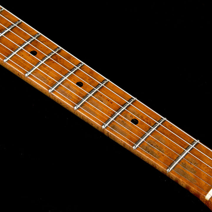 This limited edition fender '56 Fat Roasted Stratocaster lives up to it's name - thanks to the "roasted" maple neck and alder body, as well as the hand-wound Fat '60s Strat pickups and Fat '50s wiring! The Aged Black finish makes this one quite the looker, and the AA birdseye maple neck is no red-headed step child. Other features include a 9.5" radius fingerboard, 6100 jumbo (fat!) frets, vintage six point tremolo, and a cool anodized aluminum pickguard.