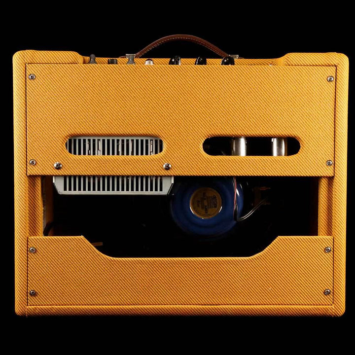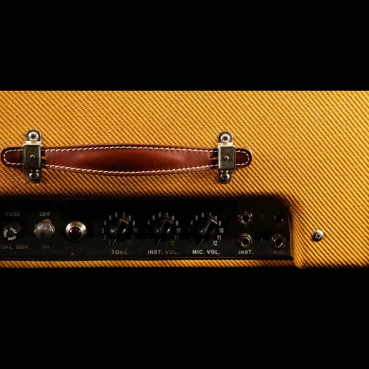 This is a pre-owned Fender 'The Edge' Deluxe amplifier, a tweed covered 1x12” combo amp designed in partnership with the U2 guitarist. This amp is a spin on the ’57 Tweed Deluxe that The Edge uses personally! Whether played clean or crunchy, this amp produces the tone and articulation of the vintage Fender Deluxe amps that are an important part of his complex multi-amp and effects setup. The amp has a single 15 watt 12” Celestion Blue speaker with a modified circuit for tighter bass response, and a custom volume pot taper. The amp is still in excellent condition with all features functioning as it should - the previous owner even installed a great sounding set of vintage RCA tubes in it.