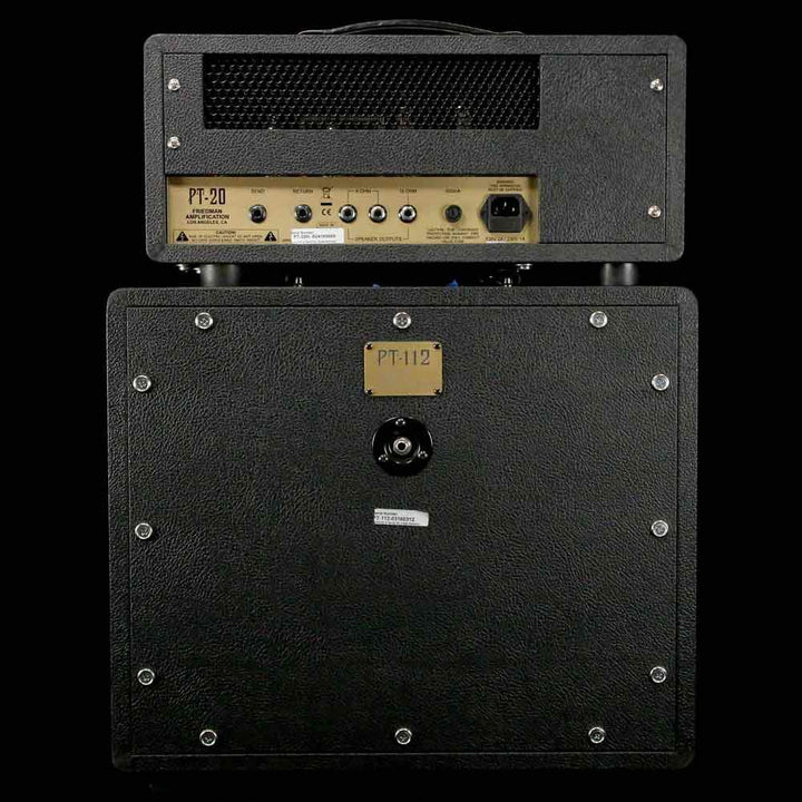 This is a used set of a Friedman PT-20 Pink Taco head with a matching Friedman pre-owned PT112 cabinet. The Pink Taco from Friedman Amplification is a 20-watt guitar amp head driven by two EL84 power tubes and one 12AX7 in the preamp. Players will find plenty of the tight, focused overdrive that Friedman's renowned for, along with shimmering cleans with a quick turn of your guitar's volume knob. The amp is completely hand-wired and uses a Metro effects loop. Outputs are for 16 ohms (one output) and 8 ohms (two outputs). This amplifier set is in excellent condition.