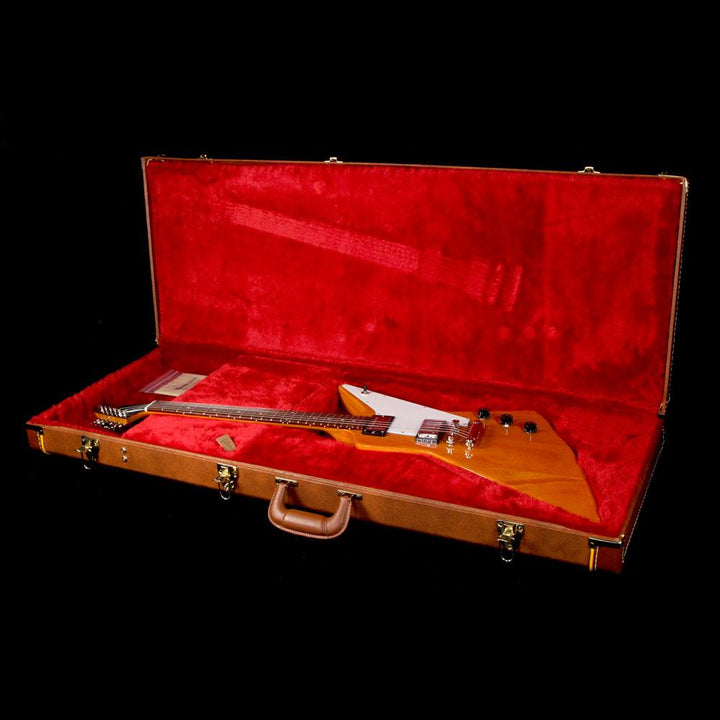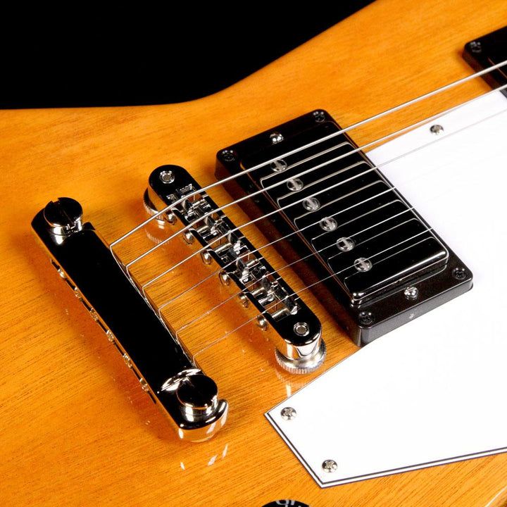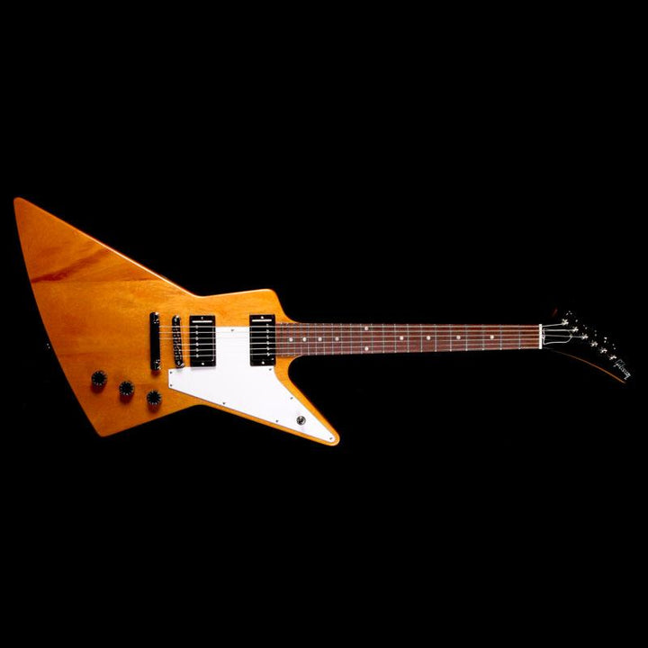 This lightly used 2018 Gibson Explorer is offered here in an Antique Natural finish, reminiscent of the desirable korina-wood examples and the original '58 model year designs. This pointy player boasts a solid mahogany body, Slim Taper mahogany neck with a broken-in feeling torrefied granadillo fingerboard, Burstbucker 2 and 3 humbuckers, a white 4 ply pickguard, and all nickel plated hardware, including the aluminum tune-o-matic with stoptail and mini Grover tuners. This Explorer is in excellent overall condition with no notable damage.