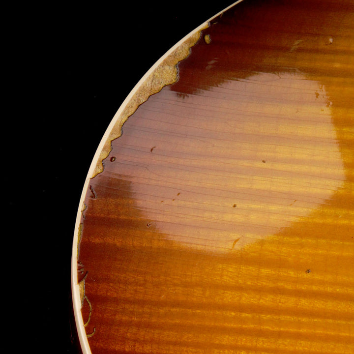 That's right! The coveted "B" word on a gorgeous '59 Les Paul Reissue...Brazilian, baby! This is a new 2017 Gibson Custom Shop '59 with a Slow Iced Tea Fade finish over a flame maple top with a Carmelita top carve, solid mahogany body with all-hide glue construction, two E-Bucker humbucker pickups, and a great looking Brazilian rosewood fretboard, just like the original guitars had. The neck profile on this one is carved to Pearly Gates specs, and the guitar is heavily aged to appear similar to the wear patterns of the guitar on page 83 of Beauty of the Burst.