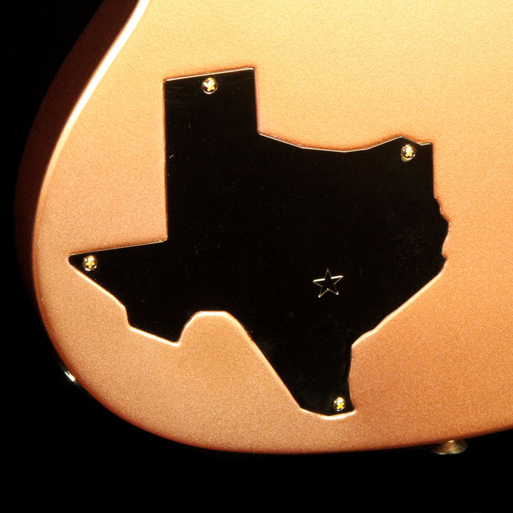 The Music Zoo is incredibly excited to offer this rare instrument for sale: a “From the Vault” Gibson Custom Shop Ultimate SG Prototype, designed by the one and only Billy Gibbons. These guitars were part of a very limited run sold as part of a Neiman Marcus Christmas Book package, and Gibson had made available two prototypes from the run, this one being #5! The guitar has a custom contoured mahogany SG body matched with a Flying V neck, two-tone copper and gold finish to complement the contoured body, Seymour Duncan Pearly Gates humbuckers with gold covers and a gold neck pickup spacer embossed with Gibbons’ signature, and an awesome side-pull vibrato tailpiece: pure class. Did we forget to mention that the backplate on the body is shaped like the guitarists home in the Lone Star state of Texas? This is a guitar that will be a highlight of any Gibson, SG, or ZZ Top collection!