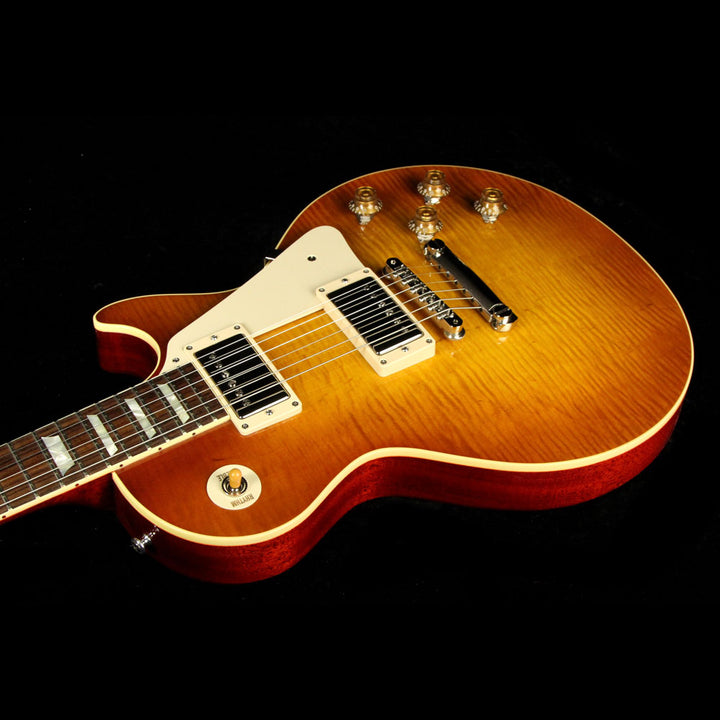 This is a gorgeous 2017 Gibson Custom Shop '59 Les Paul in an eye-catching Sunrise Teaburst finish over a flame maple top. Standard Historics are fantastic Les Pauls built with hide glue neck joints and a Historic long neck tenon for a very resonant feel to pair with the timeless looks. This one with its unique light shading in the burst is a true winner!