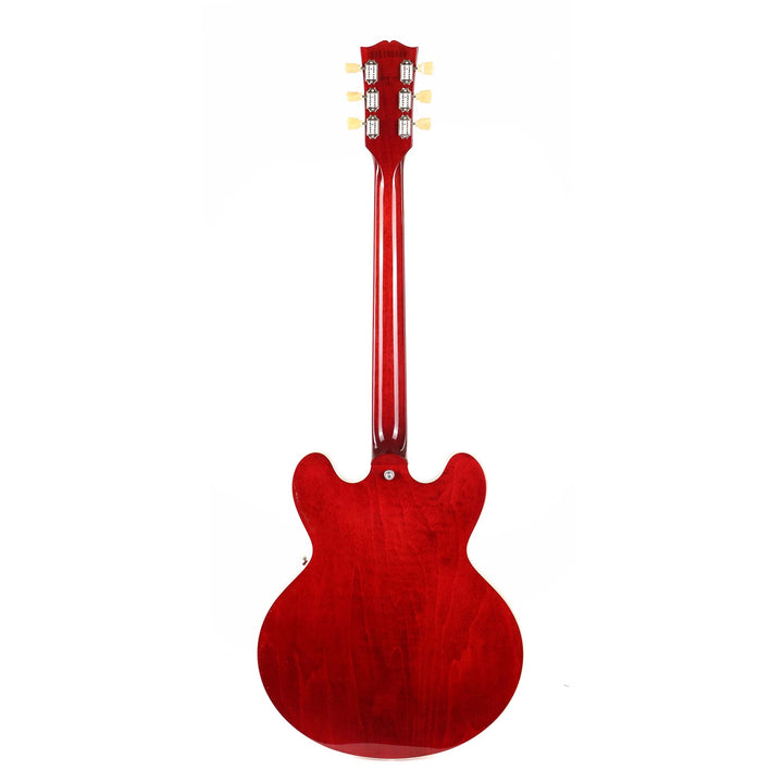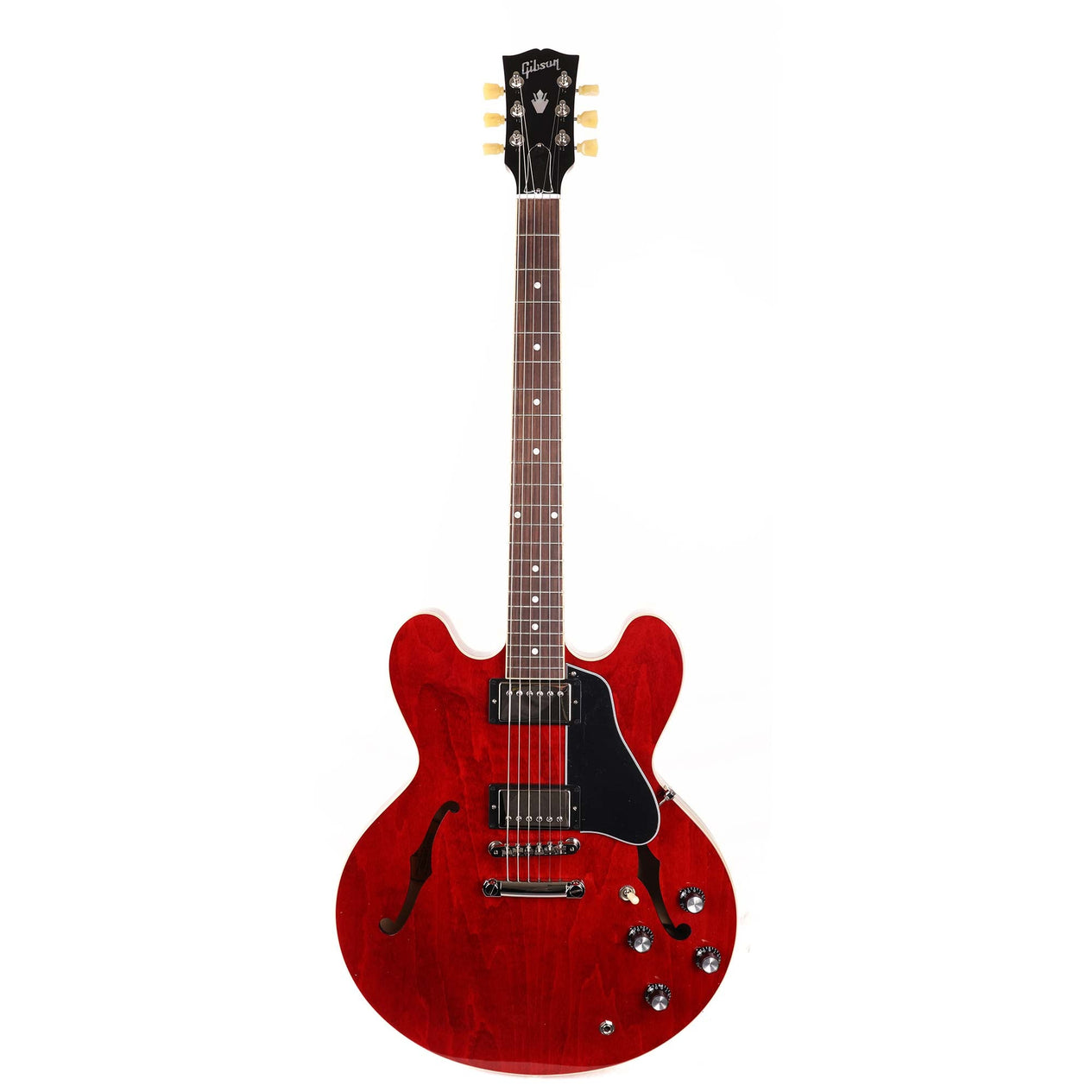 The Gibson ES-335 model is the corner stone of the Gibson ES guitar lineup! This smooth-feeling gloss model is finished in Sixties Cherry over a 3-ply maple body with a hand-rolled Rounded “C” mahogany neck, loaded up with two Calibrated T-Type humbuckers and a hand-wired harness. Tuning stability and precise intonation are provided by the Vintage Deluxe tuners, an ABR-1 bridge! Add a great playing ES-335 to your collection today!
