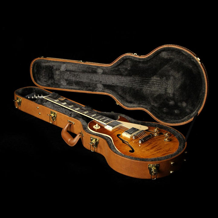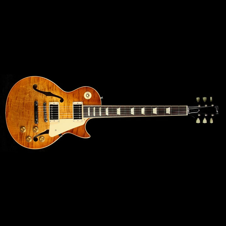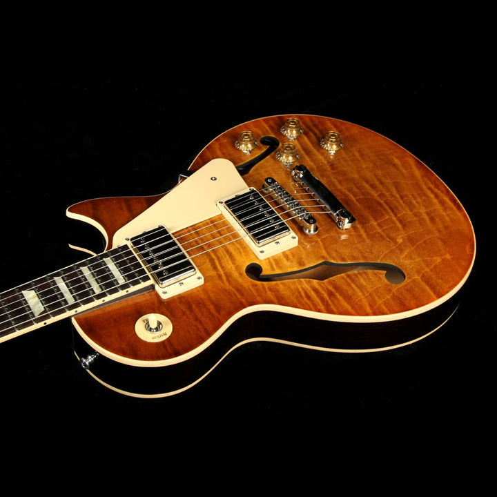 This is a fantastic playing as well as looking pre-owned Gibson ES-Les Paul, a semi-hollow spin on the classic Les Paul design.This unique semi-hollowbody guitar features a gorgeous Faded Light Burst finish over the maple/poplar arched top. A ES-LP Center Block gives tons of sustain and warm tone to complement the crisp tone of the maple top. The guitar has a one-piece mahogany neck with a Historic rounded "C" profile. The MHS humbucker pickups come together to produce some modern yet familiar Les Paul tone. This ES-Les Paul is in overall excellent shape with the original case and COA included.