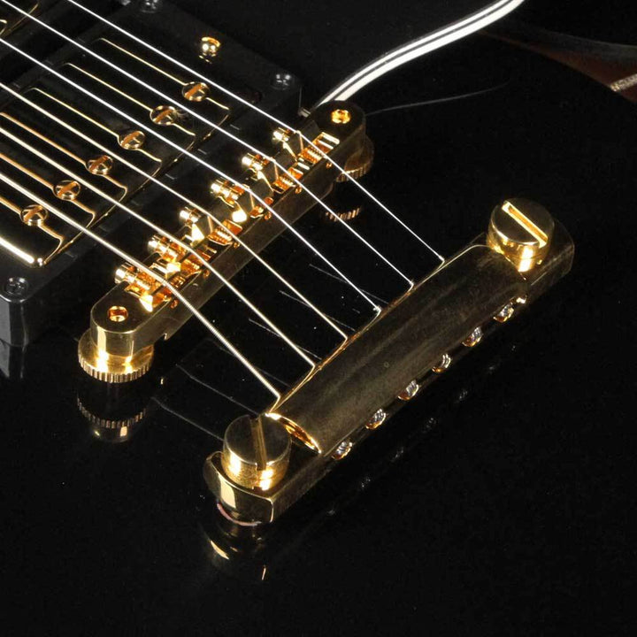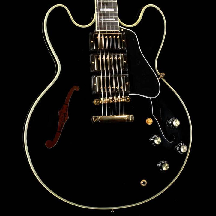 This Gibson Memphis ES-355 Black Beauty is only being made in extremely limited quantities, so grab it before it's gone! You've seen plenty of 3 pickup Black Beauty Les Paul Customs, but now it's time to add the semi-hollow flavored 355 to your collection! This ES-355 boasts a trio of Custom Shop MHS humbuckers, so you can coax out endless tones. Other standard features include the 3 ply maple/poplar/maple body, "Rounded C" quartersawn mahogany neck with rolled binding, a rosewood fingerboard with pearl full block inlays, modified MTC Premiere electronics, an ABR-1 bridge with aluminum stoptail, Grover Rotomatic tuners, and of course, all gold hardware!