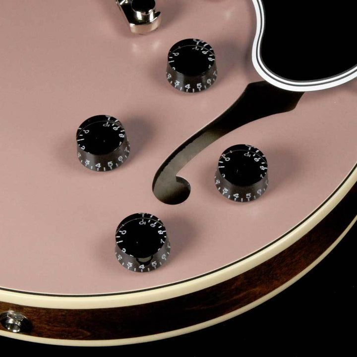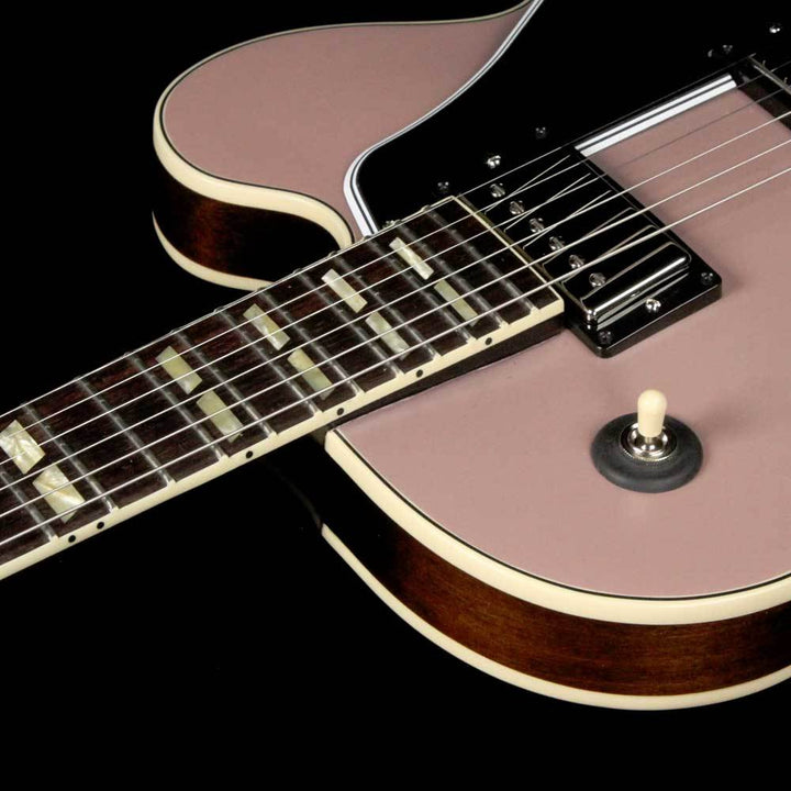 Here’s a deal on a lightly used Gibson ES-275 Thinline Satin, still in overall excellent shape with the original case included. In the tradition of the classic jazz archtops, the ES-275 offers just the right amount of modern functionality, and a unique thinline body for extra comfort - not to mention the very cool Wood Rose finish. This Memphis made ES-275 is built of a 3-ply maple/poplar/maple body. The quartersawn "Rounded C" mahogany neck is topped with a bound dark rosewood fingerboard with rolled binding and full block mother of pearl inlays. The MHS II Rhythm and Lead humbuckers provide PAF-like tones, in conjunction with the hand wired MTC Premiere electronics circuit.