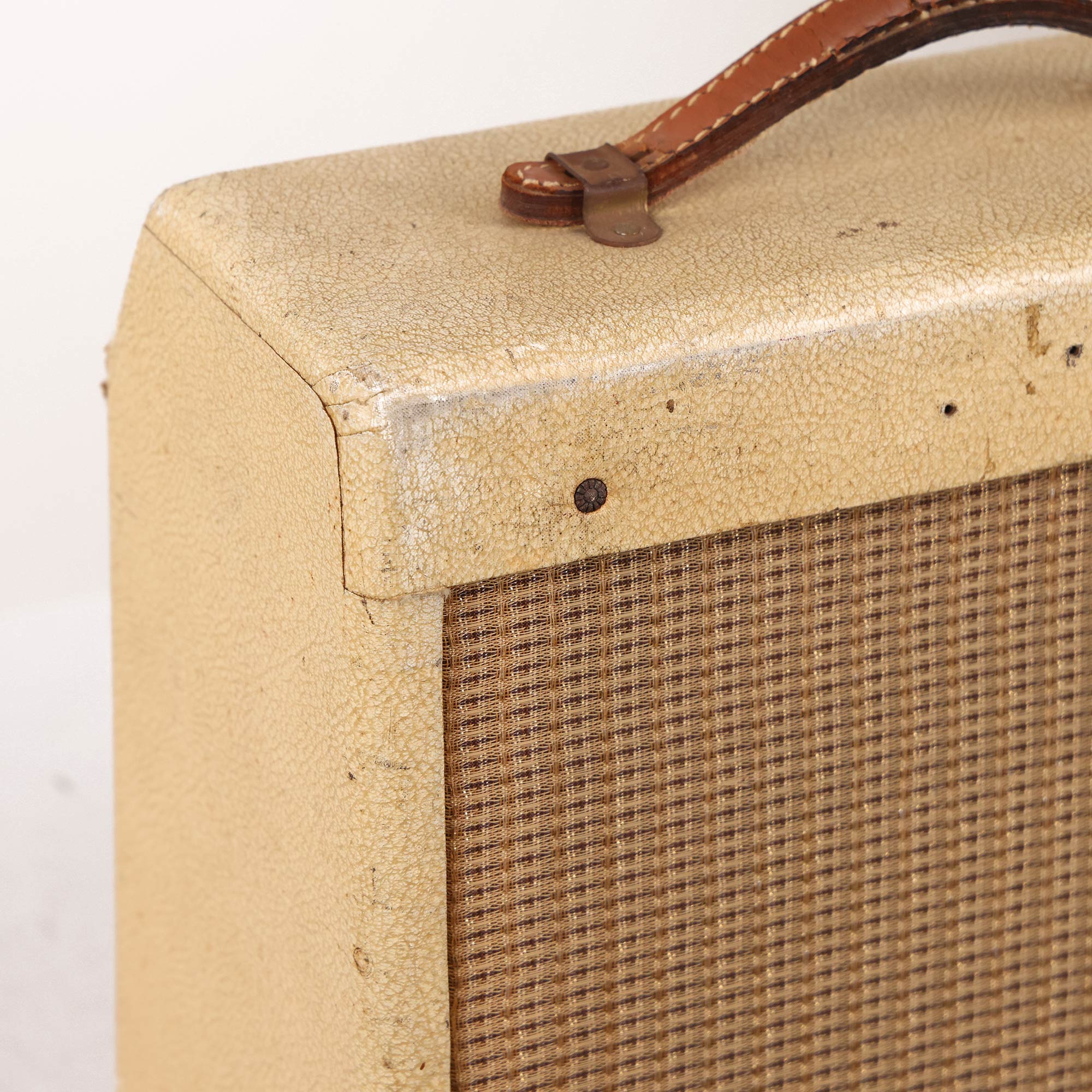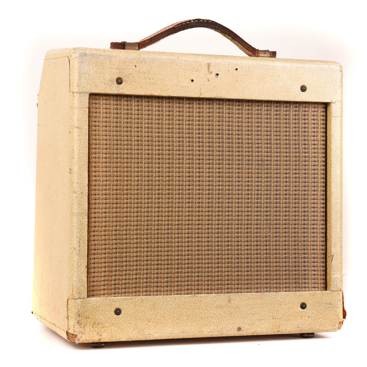 This vintage Skylark is all gain all the way through the sweep of the volume. The volume control is scratchy and we would recommend having it cleaned. There is not much change in volume from from 7 to 10. The amp has a two prong cord and an 8 inch speaker.