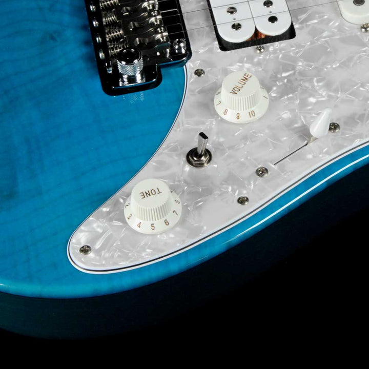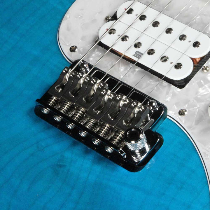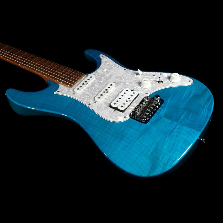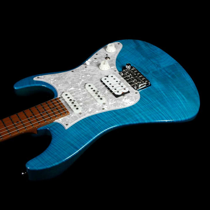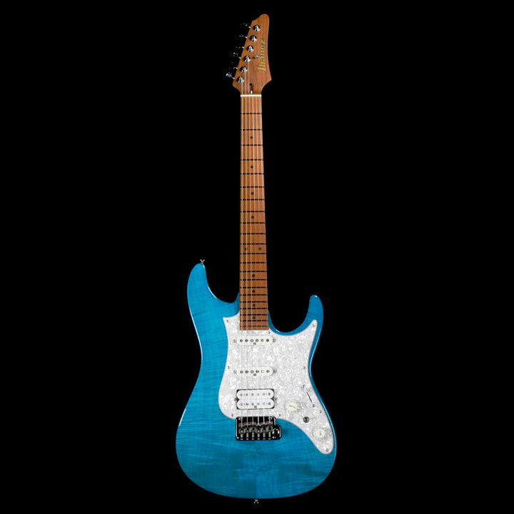 The new AZ Series from Ibanez is a culmination of their rich history of guitar crafting and knowledge of what makes a great guitar great, from A to Z. This is the new Prestige AZ2204F in a Transparent Aqua Blue finish over an alder body with flame maple top, an Oval "C" shaped S-TECH roasted maple neck, Seymour Duncan Hyperion pickups in an HSS configuration, the new Gotoh 2-point tremolo and locking tuners, and a mini-toggle "Alter" switch - which when combined with the 5-way switch provides a total of 9 tones out of a single instrument!