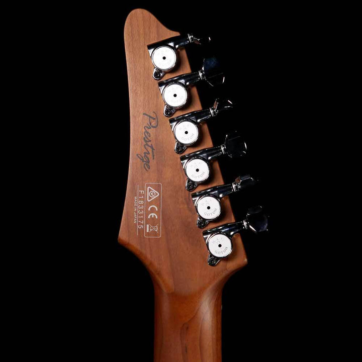 The new AZ Series from Ibanez is said to have covered all their accumulated knowledge of what makes a great guitar great, from A to Z. This is the new Prestige AZ2402ICM in Tri Fade finish with an alder body, oval "C" shaped S-TECH roasted maple neck, smooth neck heel, 2-point tremolo, locking tuners, and the mini-toggle Alter switch which when combined with the 5-way switch will tap the humbuckers for a total of 9 tones out of a single instrument!