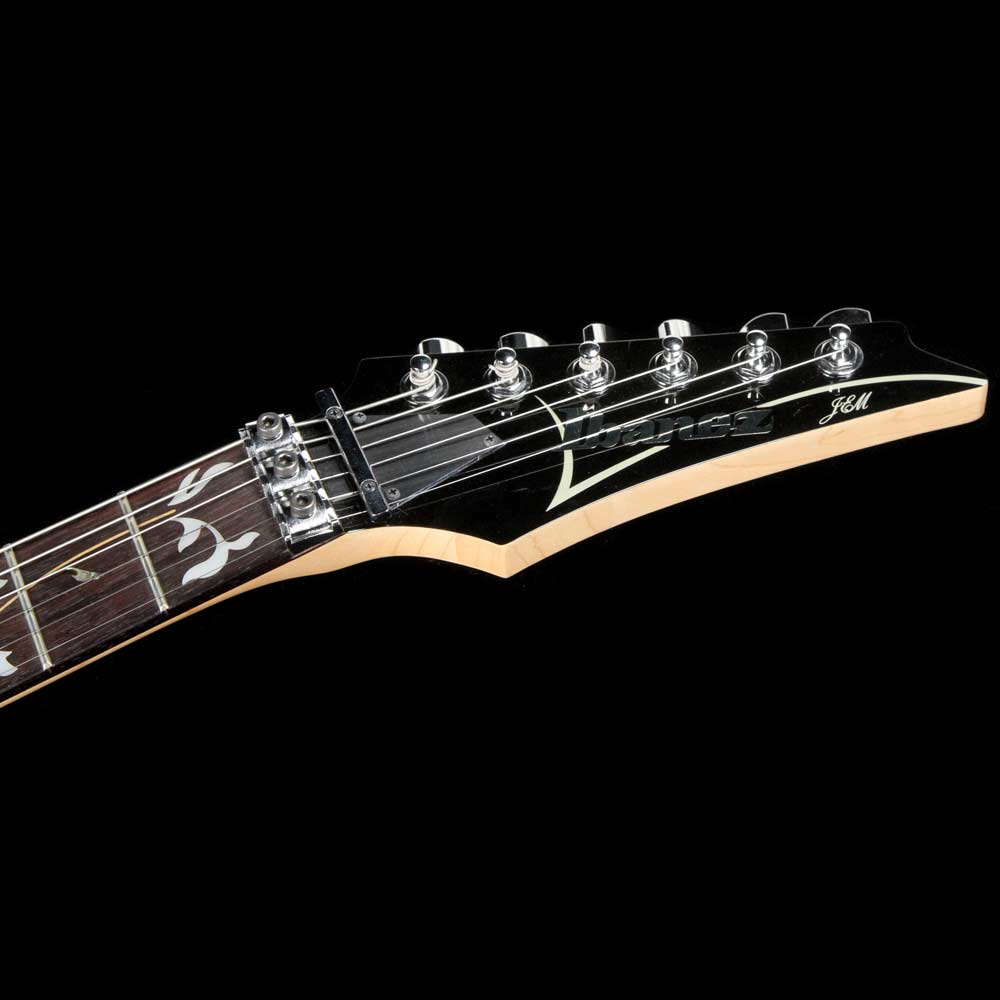 This pre-owned Ibanez Jem 77V BK is a real shred machine! Featuring a Basswood body and a multi-ply Maple/Walnut neck, this Steve Vai Signature guitar covers as many styles as you can throw at it. The Ibanez Edge Pro locking tremolo and nut let you perform whammy bar theatrics worth of Vai himself, and the DiMarzio Breed pickups provide all the firepower you need. The beautiful Vine inlay is not to be overlooked either! This instrument is in overall excellent condition and includes the original case, hang tags, and trem arm