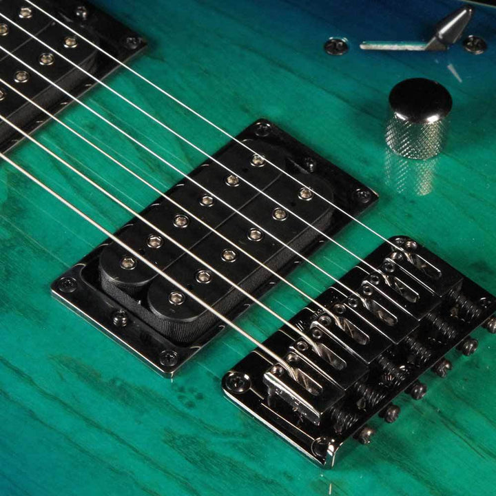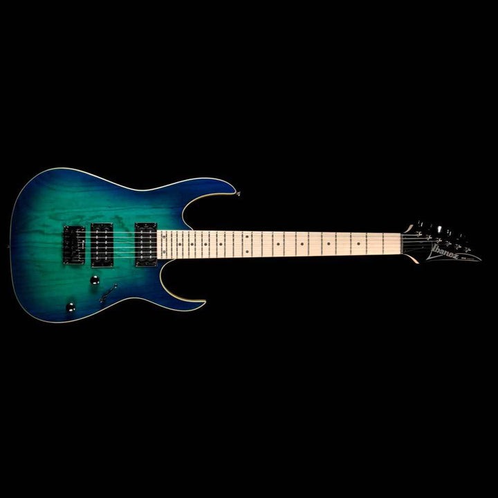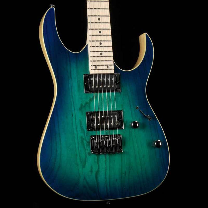 RG shreadability at a great price: this is the Ibanez RG421AHM with a blue moon burst finsih over an ash body. The guitar includes a Wizard III profile maple neck, 24 frets, a fixed bridge, and Ibanez Quantum ceramic humbuckers to provide the tone!