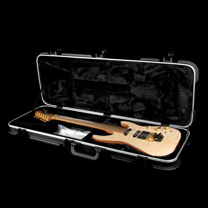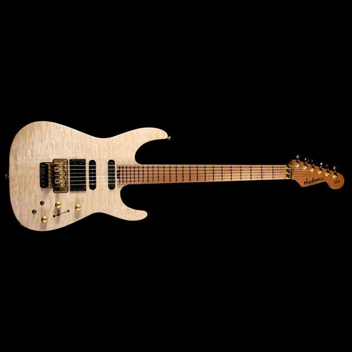 You can't spell '80s without Def Leppard! This Jackson USA Signature is a throwback to one of Phil Collen's original artist models from the '80s. Jackson and Phil decided to refresh the PC1 Dinky based on Phil's latest wishes and specifications.This shred machine boasts a caramelized mahogany body and 1/8" quilted maple top with a breathable satin-poly "Au Natural" finish, a caramelized quartersawn flamed maple neck and fingerboard with hand rubbed gel urethane finish, and a trio of high output pickups in Collen's favorite HSS configuration, including the DiMarzio® DP-152-F bridge humbucker, HS-2 DP116 middle pickup, and a PC1 Sustainer driver in the neck. It also boasts a Floyd Rose Original trem, a Sustainer circuit, dome style knobs, gold hardware, and Jackson die-cast tuners. No pointy headstock on this one either - Strat style!